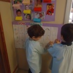 Els alumnes d’Infantil treballem l’Advent amb un calendari que hi ha a la sala de Psicomotricitat. Hi ha un gran mural on cada dia apareix una figura del pessebre i un cop descoberta, parlem d’aquest personatge i li cantem una cançó.