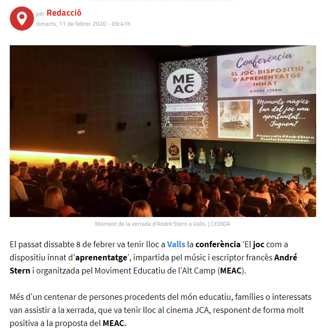 El Vallenc fa ressó de la conferència d’André Stern que vam organitzar des del MEAC.