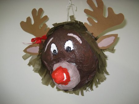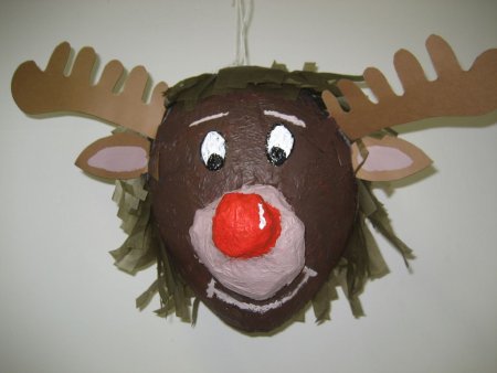 Rudolph is a “piñata” and he’s hanging up in the classroom.