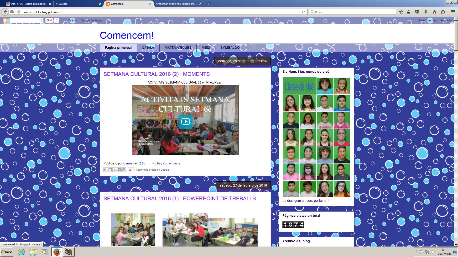 Recordeu que a mà dreta de la pantalla podeu obrir el bloc de sisè de l’escola. Són les coses que els alumnes de 6è van fent i van penjant.