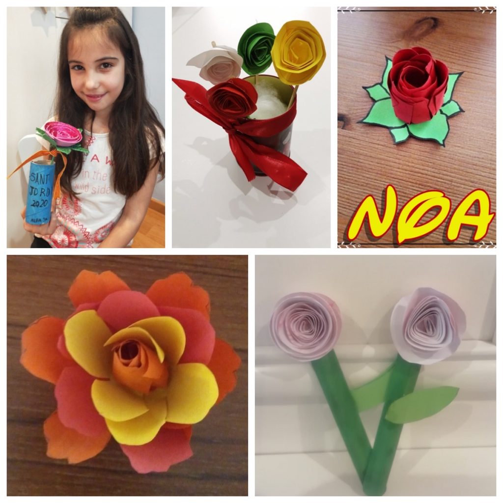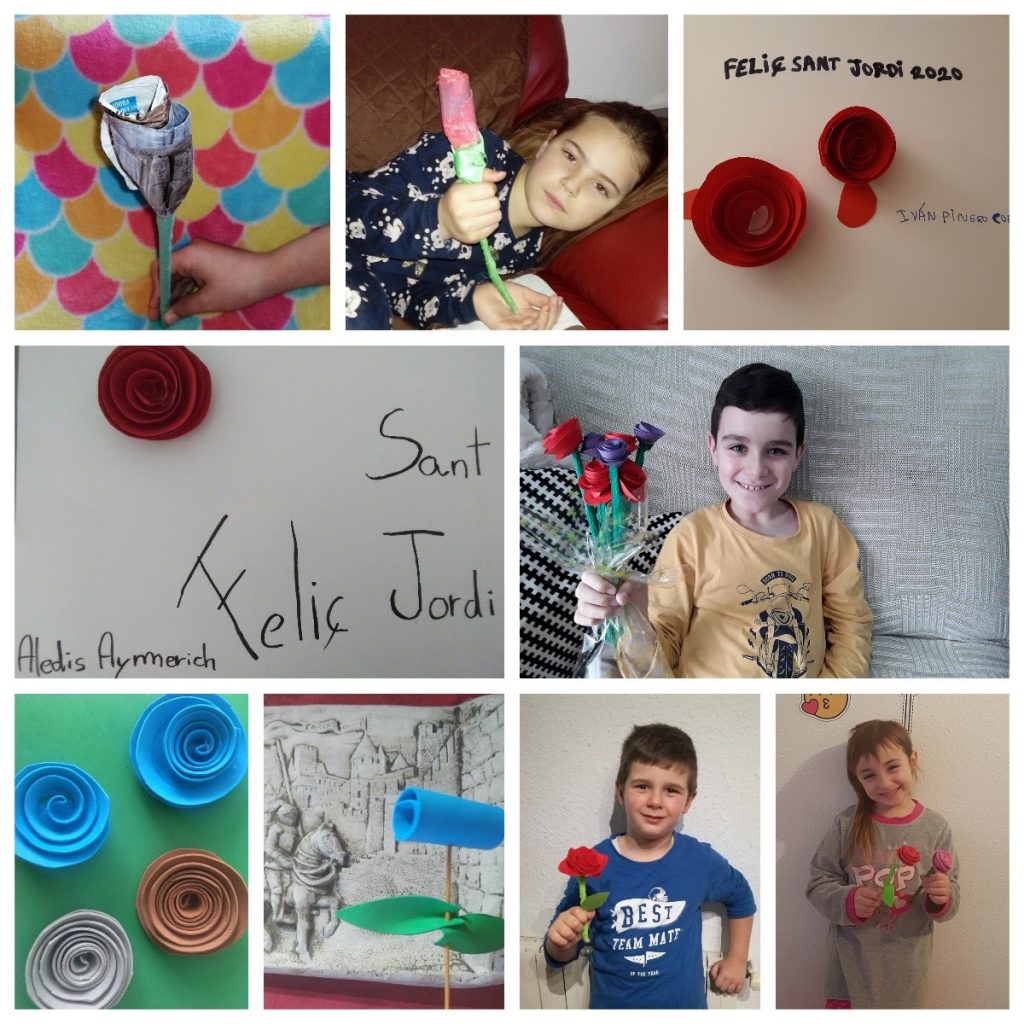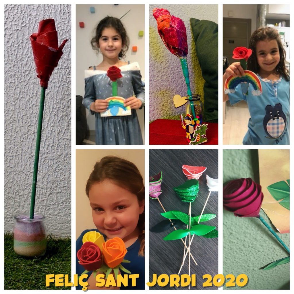 Avui ens hem despertat per celebrar un Sant Jordi ben diferent. No podrem fer l’assaig de les danses, ni de les cançons, no podrem posar-nos la nostra samarreta de color, ni podrem agafar la rosa ni el llibre per la classe…. però entre tots i totes hem fet que el balcó de la nostra escola llueixi ple de roses.