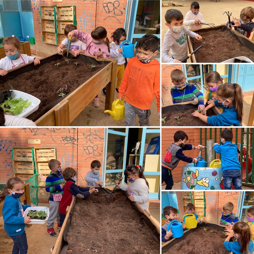 Els nens i nenes de Primer ens engresquen de seguida. Hem plantat a l’hort planter i les llavors que ens han germinat a la classe. Estem molt emocionats. Les faves creixen molt. Segurament tindrem sort i veurem com floreixen. De moment anem regant i plantant molt contents.