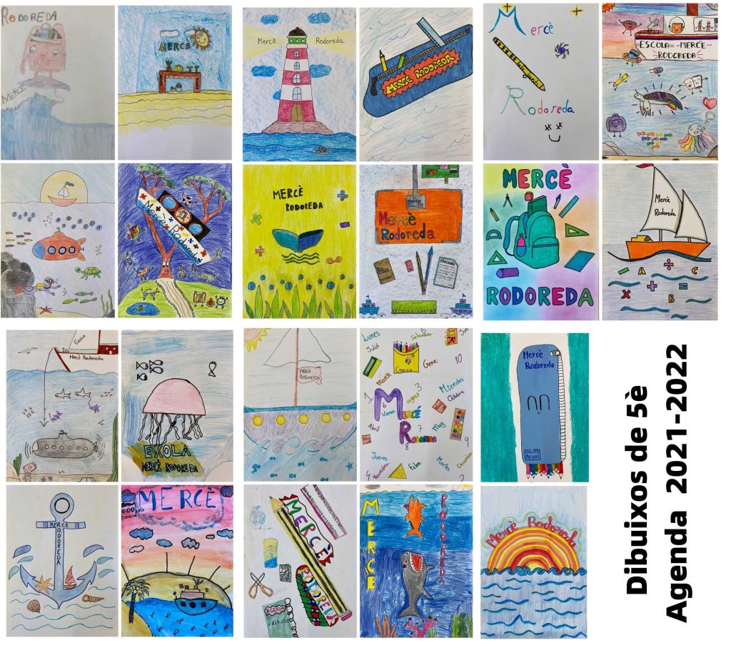 Com cada curs escolar els alumnes de 5è fan dibuixos molt bonics per escollir d’entre ells un que sigui la portada de l’agenda del curs vinent. La veritat es que aquest any ha estat molt difícil d’escollir ja que tots i totes han fet uns dibuixos molt bonics.