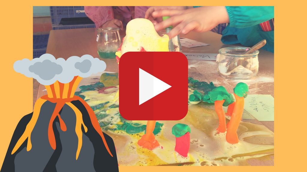 A partir de la creació del conte “El castell màgic”, que com ja sabeu, és un conte que hem creat i inventat els infants de Petits B, la sorgir força interès pels volcans. En els seus dibuixos podíem observar volcans, la Berta ens va portar un llibre amb informació sobre els volcans, la Vera ens va portar el conte “Tinc un volcà”, on la protagonista quan s’emprenya sent una sensació similar a quan un volcà entra en erupció… Vam tenir molts dies altres llibres sobre volcans, en vam anomenar les seves parts (cràter, xemeneia, lava…), vam veure que hi ha volcans que estan actius, d’altres adormits…