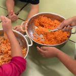 Els insfants de 3r fan pastís de moniato.