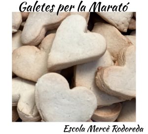 Aquest any des de l’escola ha volgut formar part de la iniciativa de la Marató de TV3 dedicada a les malalties cardiovasculars. Els infants d’educació infantil han començat a fer les galetes que després compraran voluntariament les famílies, per així fer una donació conjunta a la Marató de TV3.  Uns voluntaris de la comissió de cooperació es han ajudat a fer les bossetes i els representants de l’escola del Consell d’Infants les han venut. (Treball en equip). Ha estat tot un éxit, moltes gràcies per la vostra col·laboració. Seguirem amb la inicitiva dimecres vinent.