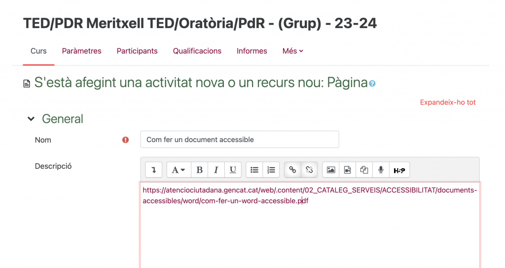 - Nom de l’activitat: APRENEM A FER UN DOCUMENT ACCESSIBLE