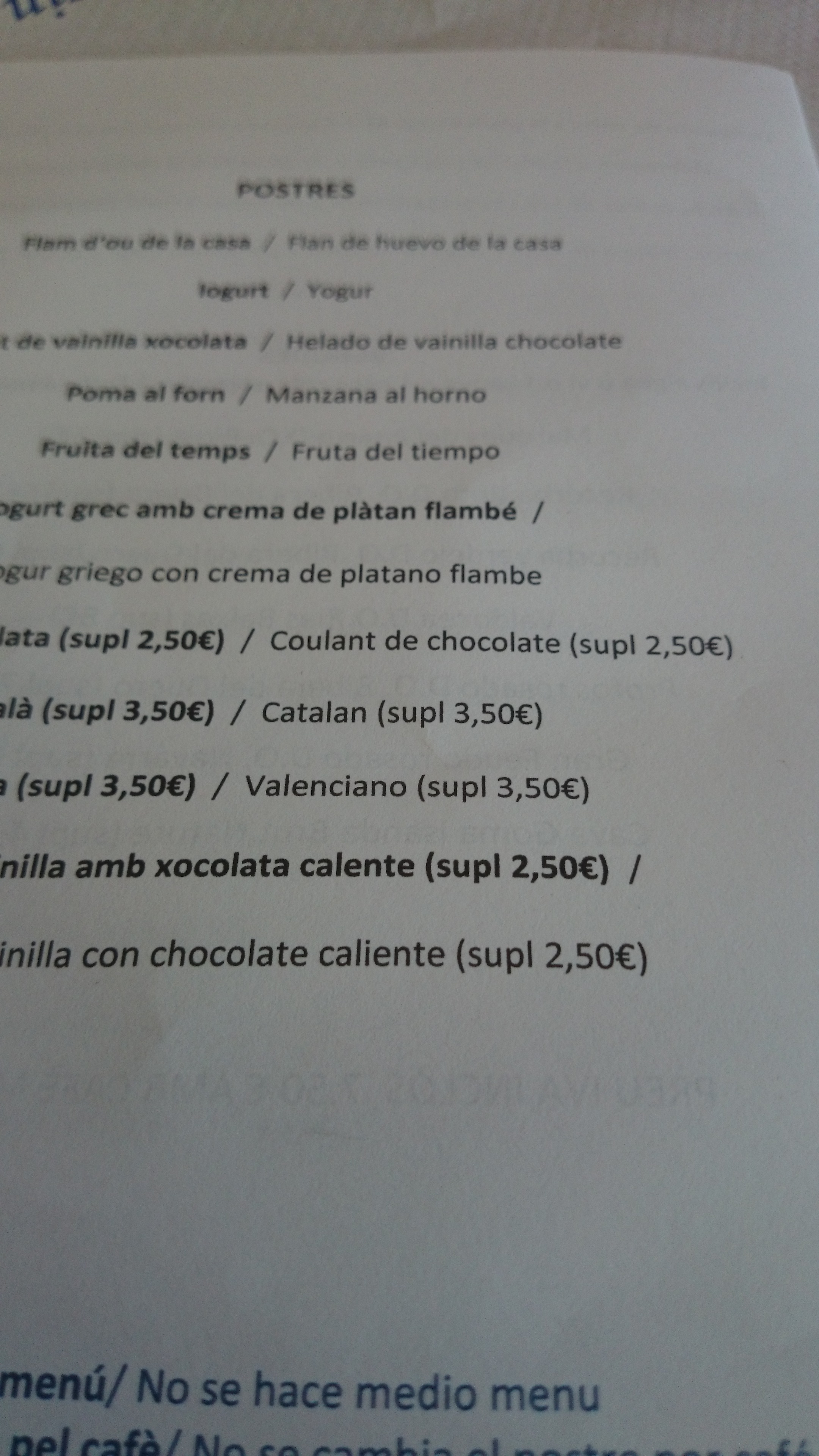 La nostra Caçadora Sandra Plaza ha trobat uns errors ortogràfics en aquestes cartes de restaurant. A la primera foto, ja ho haureu observat, la xocolata no ens la prenem “calente“, sinó, com tots sabem “calenta“, perquè és un adjectiu que acompanya una paraula femenina. Qui sap si el que va fer l’error pensava en l’adjectiu castellà equivalent que és “caliente”.