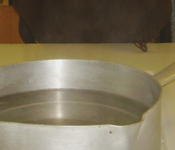 És el que passa amb l’aigua de la superfície dels rius, llacs, mars, oceans,.. Quan el sol l’escalfa, es converteix en vapor d’aigua que puja cap a l’atmosfera.Això passa contínuament. Aquest fenòmen s’anomena EVAPORACIÓ.
