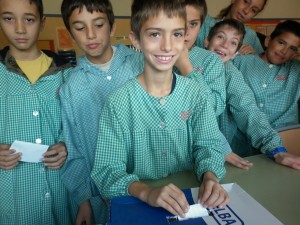 Avui a Cinquè B hem triat els deledats i delegades. De moment ja tenim delegat i serà l’Aitor. S’ha donat  un empat per triar subdelegat/ada que resoldrem aquesta tarda. El procés ha començat amb la “campanya” dels candidats/es. Hem escrit el nostre vot i l’hem ficat en una urna. L’escollit ha estat l’Aitor i hi ha hagut un empat entre la Basma, en Marc i l’Andrea Morales.