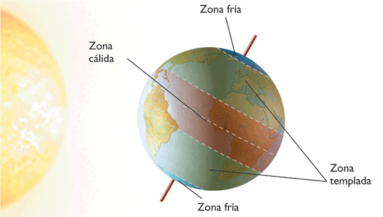 Recordeu que heu d’explicar per què hi ha aquestes zones. Al dibuix heu de pintar les zones fredes de color blau, les zones temperades ce color taronja i les zones càlides de color vermell.