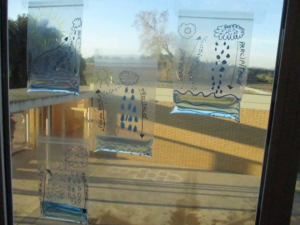 Aquestes setmana a Medi els alumnes de 3r estem treballant el cicle de l’aigua. Per poder observar de prop com es produeix hem realitzat amb un petit experiment per parelles. En una bossa amb tancament hermètic hem dibuixat el procés d’evaporació i de condesació de l’aigua. Hem afegit aigua amb colorant blau i ho hem penjat a la finestra de la classe. Us voleu creure que l’endemà de penjar-les ja vam poder observar que l’aigua de la bossa es va evaporar una mica i es van formar petites gotes d’aigua condensades. Genial!!!