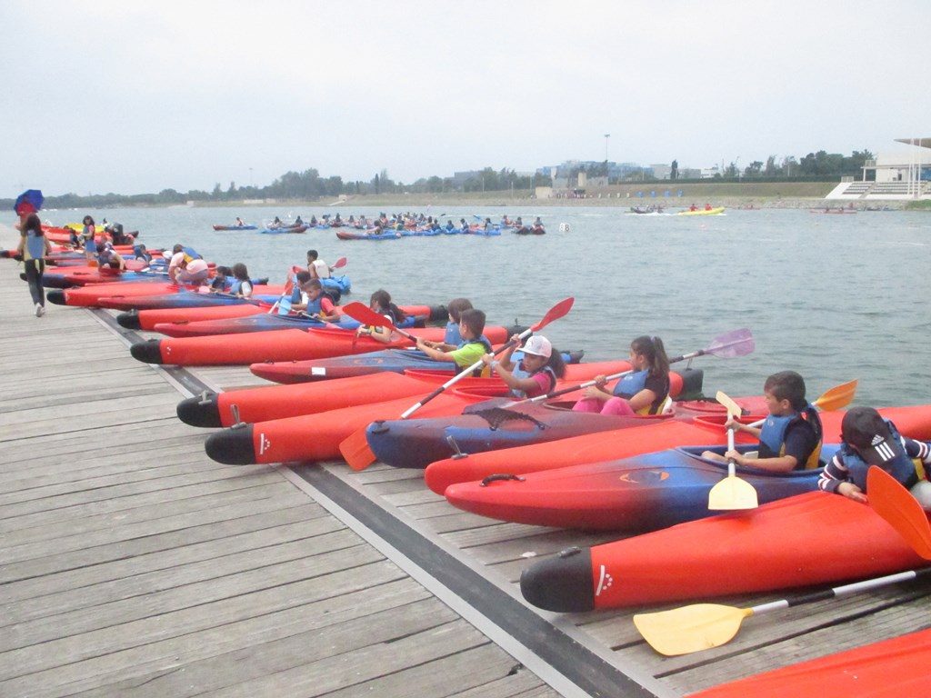 Avui tots els nens i nenes de Cicle Mitjà hem anat de sortida al Canal Olímpic. Hem estat de sort i com que estava una mica núvol no hem patit gens de calor, alguns fins i tot hem tingut una miqueta de fred mentre fèiem les activitats. Ens hem dividit en tres grups per fer canoa (per parelles), barques (en grups de 4 o 5)  i kayak individual. Cada una d’aquestes activitats l’hem estat practicant durant una hora.