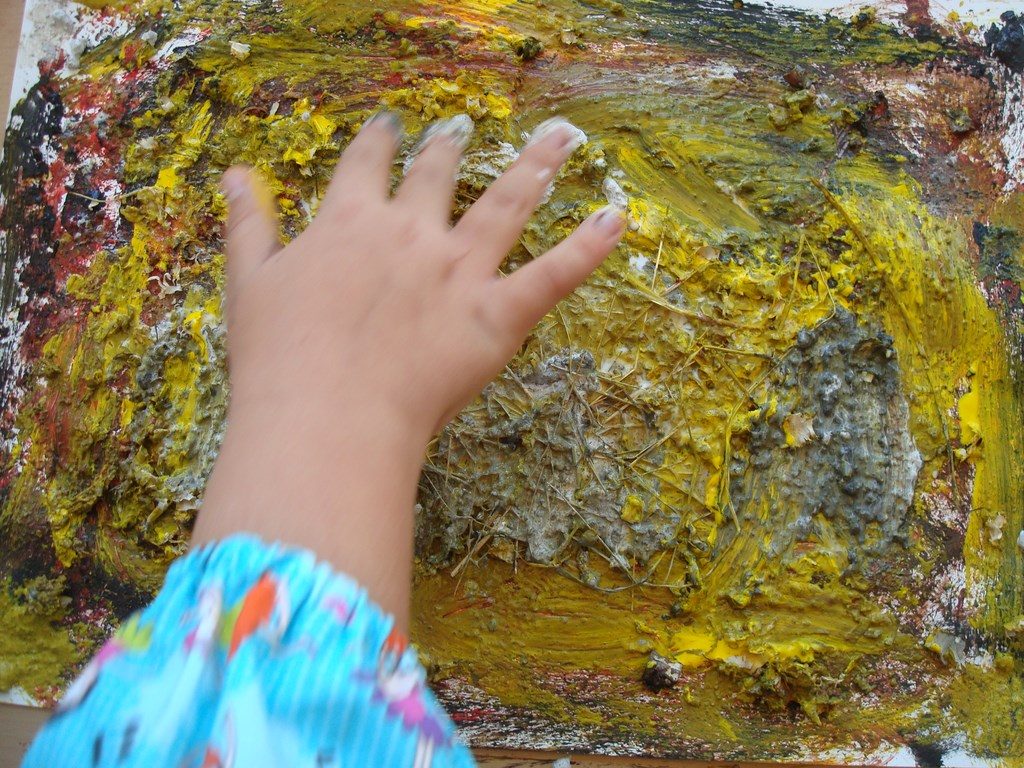Avui a la sessió de plàstica, ens hem convertit en petits “Tàpies” i hem creat una obra en la que hem incorporat elements com la sorra, les serradures, herbes, cola i pintura. Ho voleu veure?
