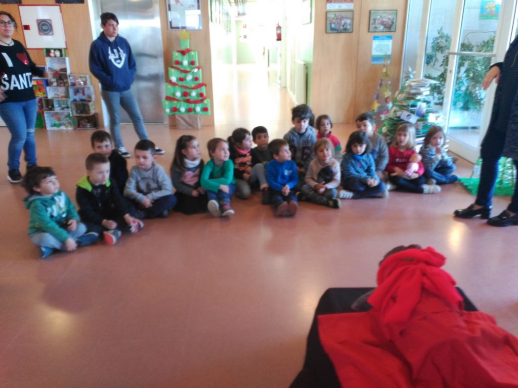 Durant aquestes setmanes fem diferents activats relacionades amb les festes nadalenques, hem decorat el passadís i l’aula amb diferents tipus d’arbres nadalencs i paraules boniques, hem fet la tapa de l’àlbum i la postal, hem anat a l’entrada de l’escola a explicar un conte vora la llar de foc amb totes les paraules i els arbres fets per tot l’alumnat de l’escola. I aquest divendres ha arribat el TIÓ.