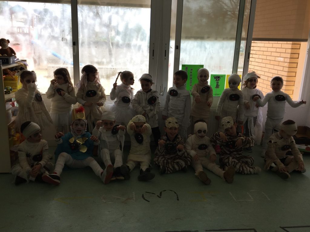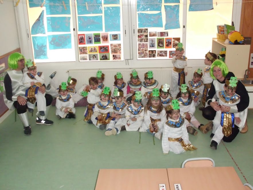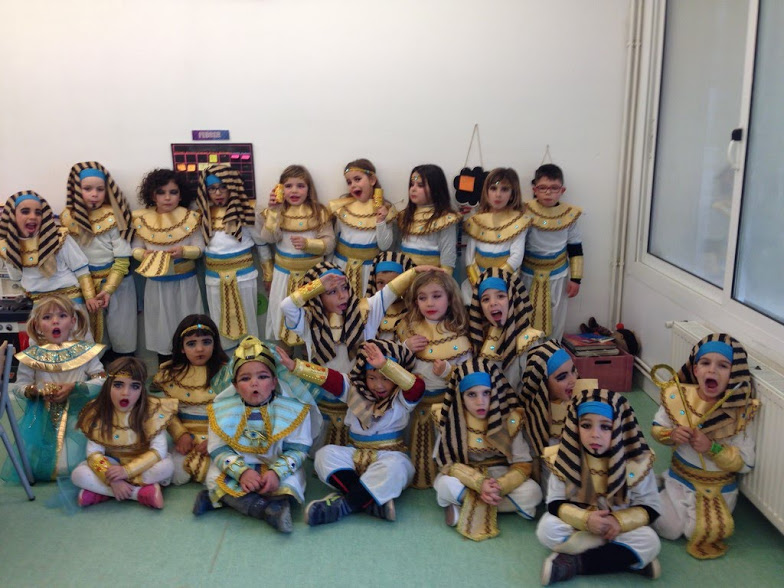 LA GRAN FESTA DE LA DISBAUXA. Tots els alumnes i mestres hem fet una gran rua pel pati de l’escola. Cada classe s’ha disfressat de la civilització antiga que representa el nom de la seva classe. Els nens i nenes de P3 han anat vestits de rei Sobek (cocodrils), els de P4 de mòmies i els de P5 de faraons i faraones egípcies. Tots ells representant la civilització de l’Antic Egipte.