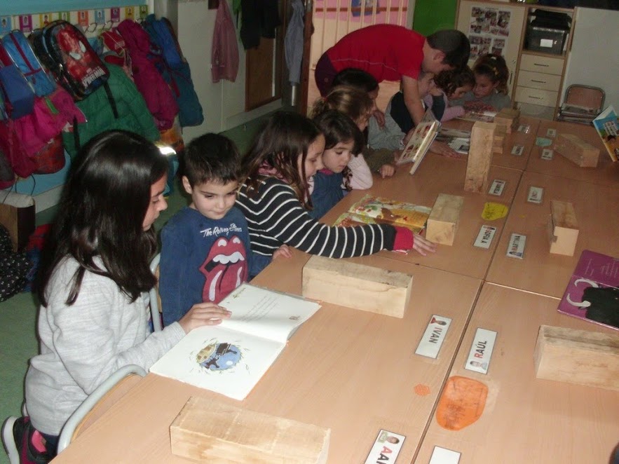 Aquest divendres, els nens i nenes de P5 i P3 hem iniciat l’apadrinament lector amb els alumnesde 6è A i 5è A respectivament. Aquest apadrinament consisteix en que un cop al mes ens reunim i els nens i nenes grans expliquen o llegeixen contes als seus fillols i filloles. A part d’explicar contes també ens trobem en altres ocasions on els nens i nenes grans ajuden als més petits. Aquest divendres hem fet el primer apropament on els infants s’han conegut i s’han agrupat com ells i elles han escollit. Han mirat contes plegats i han jugat una estona al pati. Mireu que bé s’ho passen!!