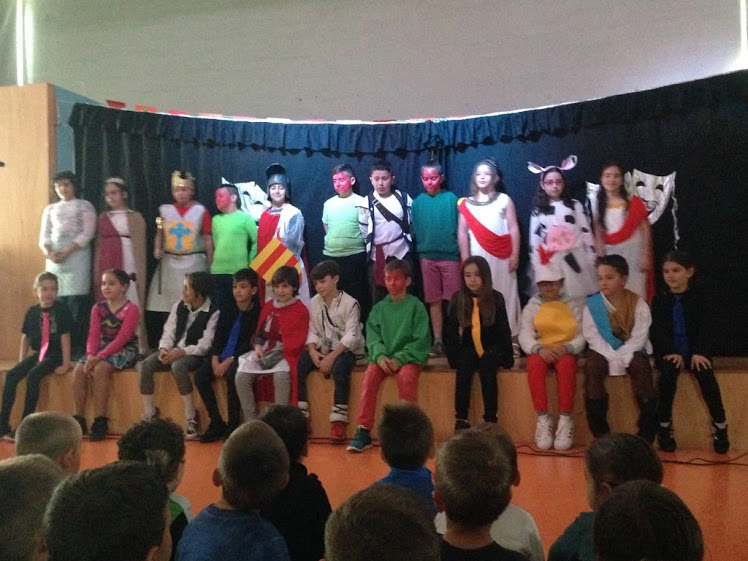 El dia de Sant Jordi, és una diada especial. Durant tot el matí els alumnes de 4t de primària de l’escola van fer la representació de la llegenda. Els alumnes d’Educació Infantil conjuntament amb els alumnes de 5è vam anar a les 9.00h a veure l’obra de teatre, i després van anar-hi la resta de l’escola. A la tarda les famílies dels alumnes de 4t van poder anar a veure els seus fills/es.
