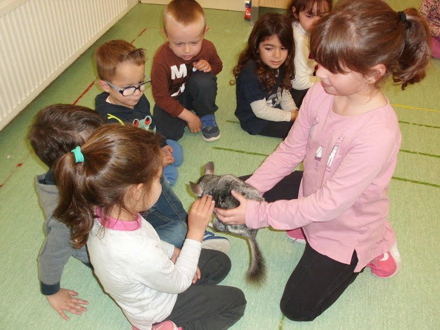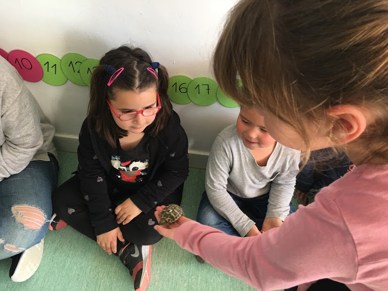 Les nenes i nens de 1r estan fent un cicle de conferències. Aquest divendres dues alumnes han fet la seva conferència relacionada amb els animals de companyia. I ens han portat a les aules d’Infantil les seves mascotes, dues tortugues de terra (molt petites) i dues xinxilles. Les hem observat, tocat, i ens han fet una petita explicació.