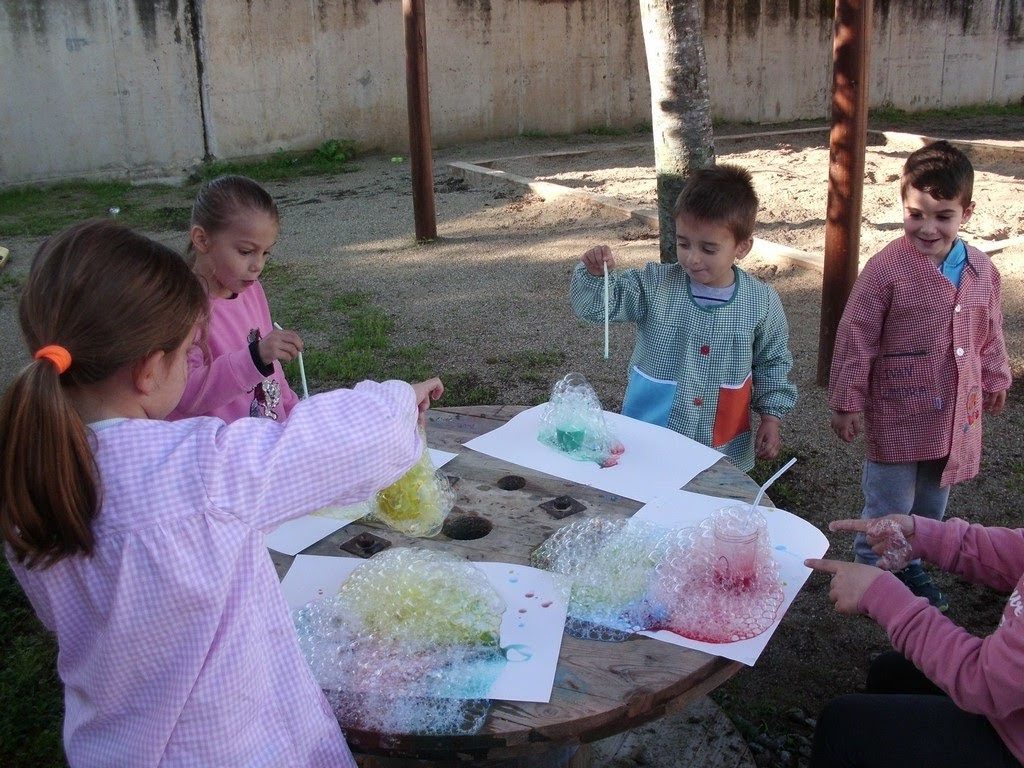 En el tercer taller hem fet bombolles de sabó de colors i les hem plasmat en un paper, va ser súper divertit.