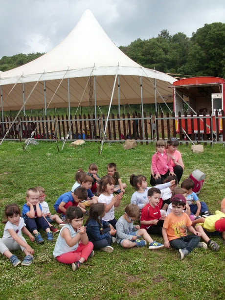 En acabar ja hem pujat cap a l’esplanada on hi ha muntada la carpa del Circ, però abans hem anat a deixar les nostres motxilles dins les tendes que teníem cada classe.