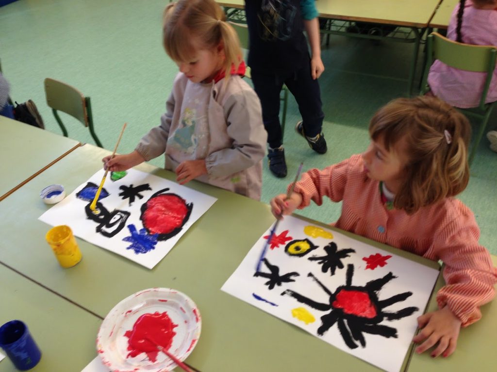 Seguim treballant Joan Miró, hem realitzat dos tallers; en un d’ells hem observat l’escultura la dona i l’ocell i hem creat la nostra pròpia escultura. I a l’altre taller de Miró hem decorat les caixes que havíem pintat anteriorment amb els colors de Miró, amb els seus propis símbols.
