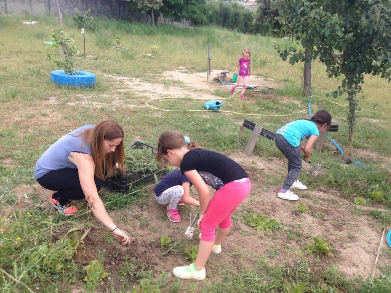 Ens van ajudar a collir pèsols i cebes, i també a regar.