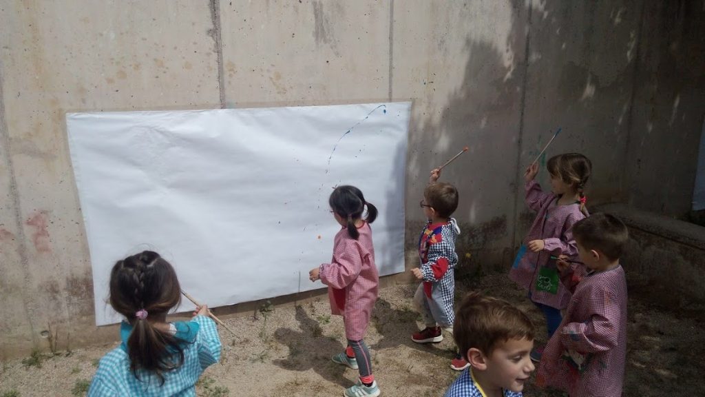 Aquesta setmana els nens i nenes de P3 hem esquitxat pintura al pati. Ens hem embrutat una mica però ha estat molt divertit. Fèiem veure que els pinzells eren varetes màgiques que expulsaven colors!! Després ja hem finalitzat pintant de manera lliure. Aquest ha estat el resultat, ho podeu veure amb les imatges. Esperem que us agradi!!