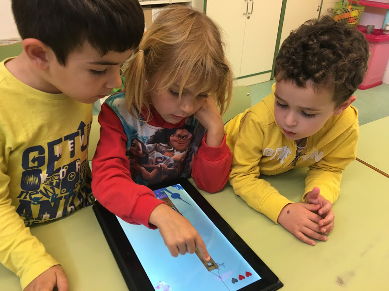 col·locar-ho en el seu lloc corresponent. També fem trencaclosques, grafisme de números, ordenem per formes o colors, juguem a l’ordinador…
