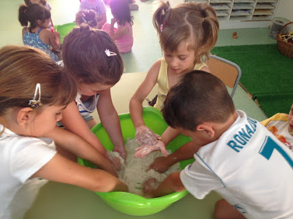Els nens i nenes d’Infantil ens ho hem passat d’allò més bé experimentant amb gelatina i fent barreges de farina.