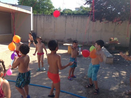 El passat dijous, a punt d’acabar l’escola vam celebrar la festa de l’aigua. És un dels dies més esperats per tots els alumnes de l’escola. Primer vam esmorzar, mentre les mestres de reforç en van preparar totes les coses al pati. Hi havia: globus d’aigua penjats, gibrells amb aigua per pescar peixos amb canyes, gibrells amb estris per jugar, cubells per fer bombolles, pilota d’aigua aspersor,… però el que més ens agrada a quasi tots és mullar les mestres i companys/es de l’escola.