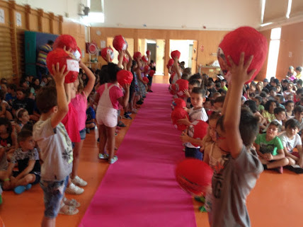 Aquest divendres ha estat l’últim dia d’escola. Per celebrar-ho hem anat al gimnàs acomiadar als alumnes de 6è que ja ens marxen a l’ institut i a donar la benvinguda als alumnes de P5 que el curs vinent aniran a primària. Dies abans del comiat tota l’escola vam decorar pintant cors la paret del gimnàs. El dia assenyalat els alumnes de P5 i 1r els hem fet un passadís per on han entrat els alumnes de 6è, mentre la resta de l’escola els aplaudia. Després els padrins i fillols, s’han fet l’intercanvi de regals.