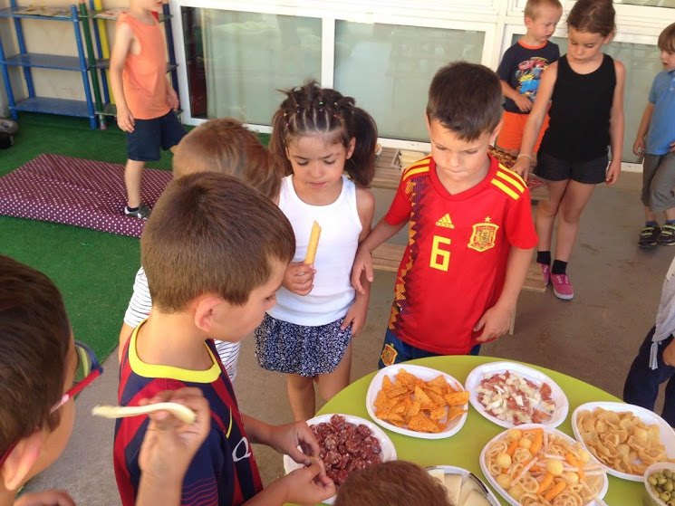 Un cop acabat aquest acte, cada grup ha anat al seu cicle i han celebrat el comiat fent un pica-pica. Els alumnes d’infantil hem fet el pica-pica fora el pati. Hem posat tots els aliments a sobre la taula i hem anat picant mentre anàvem conversant. Ha estat molt agradable.