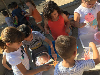 El passat dimecres vam fer el dia de la ciència. Vam portar a terme dos experiments, un consistia en observar com es desfà el gel amb sal i pintura, i l’altre en fer sorra cinètica.