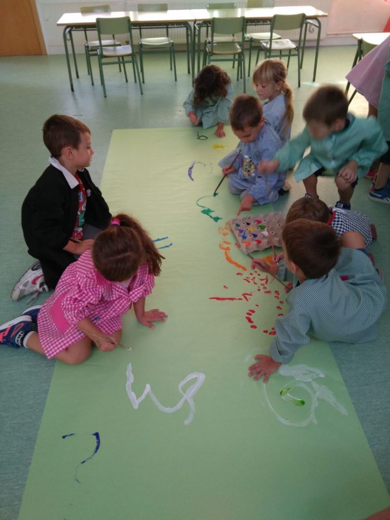 Cada infant va fer volar la seva imaginació i va dibuixar, estampar, manipular amb la pintura segons el seu gust.