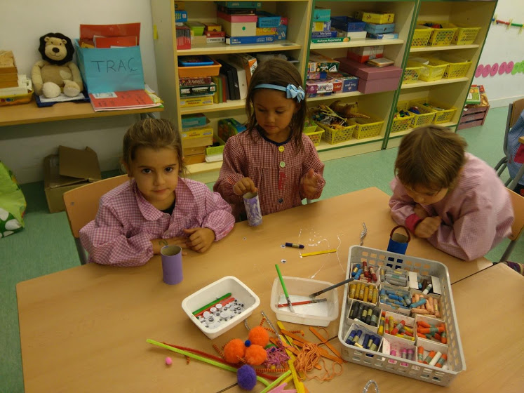 Ja estem tots, més o menys, adaptats a l’escola, a la mestra, als companys i per tant ja hem començat els tallers de plàstica amb tots els nens/es d’infantil.