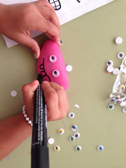 – MONSTRES DE PEDRA: Cada infant ha pintat una pedra, hi ha dibuixat la boca i ha enganxat els ulls.