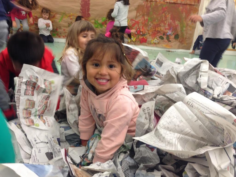 Els papers de diaris ens ofereixen un munt de possibilitats per descobrir: el podem arrugar, ens podem amagar, caminar sobre d’ell, tapar-nos, saltar fent una muntanya, estripar-lo, fer-lo volar… accions molt divertides que hem realitzat tot jugant.