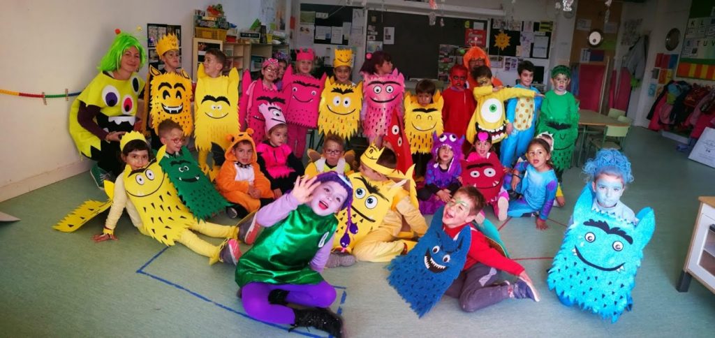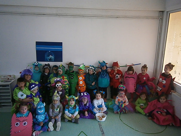 Com cada any els alumnes i mestres hem fet una gran rua pel pati de l’escola. Cada classe s’ha disfressat del conte, llibre el qual representa el nom de la seva classe. Els alumnes d’Educació Infantil, les tutores i els/les especialistes ens hem disfressat de MONSTRES, ja que els tres grups estan relacionats amb contes de monstres.