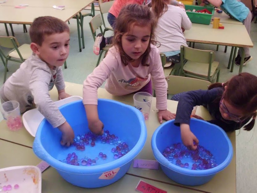 Aquesta setmana i la passada vam realitzar una tarda d’experimentació. A part de la farina i la sorra màgica que ja la coneixem. Els nens i nenes de P4 han jugat amb les boletes d’ hidrogel. Els hi ha encantat i s’ho han passat d’allò més bé!! Han descobert una textura nova que és molt agradable, relliscosa i suau. Mireu com gaudeixen d’aquests tipus d’activitat.