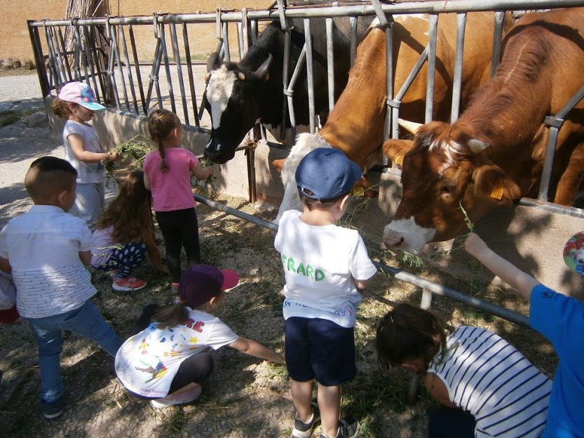 Hem anat a collir herba i els hi hem donat menjar a les vaques. També hem visitat els porquets i les truges (no les hem pogut tocar perquè ens han explicat que mosseguen), però hi havia un porquet petit molt entremaliat que sí que l’hem pogut tocar.