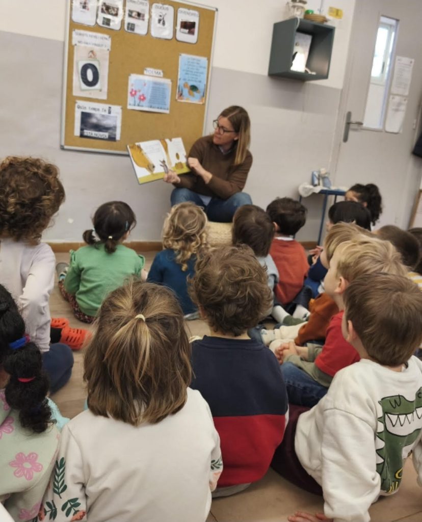Cada setmana les mestres sel·leccionem una lectura que volem compartir amb els infants i, a partir de la portada, dels dibuixos, del títol… comencem a deduir i a endinsar-nos en el món de les paraules, fent una lectura pausada i buscant en tot moment, mitjançant l’entonació, la comprensió per part dels infants de la història que estem narrant. Descobrim paraules, observem rimes, frases fetes…