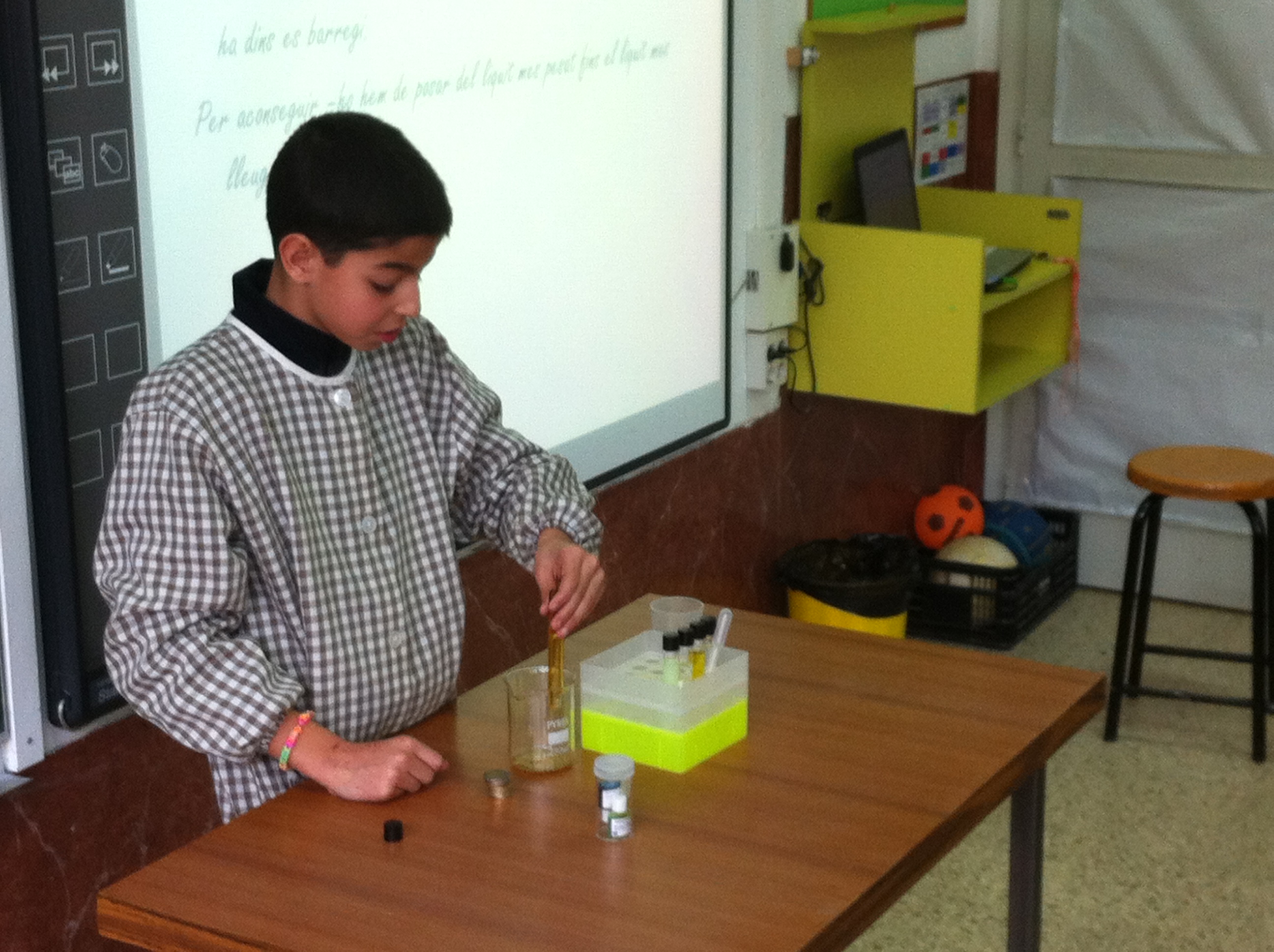 En David ens ha fet la segona conferència i ens ha preparat uns quants experiments molt curiosos com l’ou que bota, com separar el ferro de la sorra i com alguns líquids no es barregen per la seva densitat.