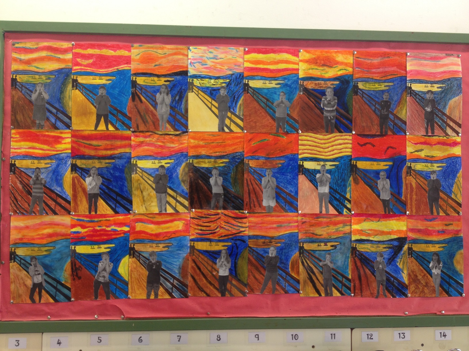 A plàstica hem reproduit l’obra més coneguda de l’artista noruec Edvard Munch, “El Crit” (1893). Hem pintat el fons del quadre amb ceres i nosaltres mateixos som els protagonistes. Aquest és el resultat!