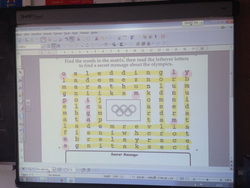 Els alumnes de 4t, aprofitant que hem estat treballant el projecte de les olimpíades, hem fet una activitat amb grup per descobrir paraules relacionades amb el tema, en ANGLÈS!