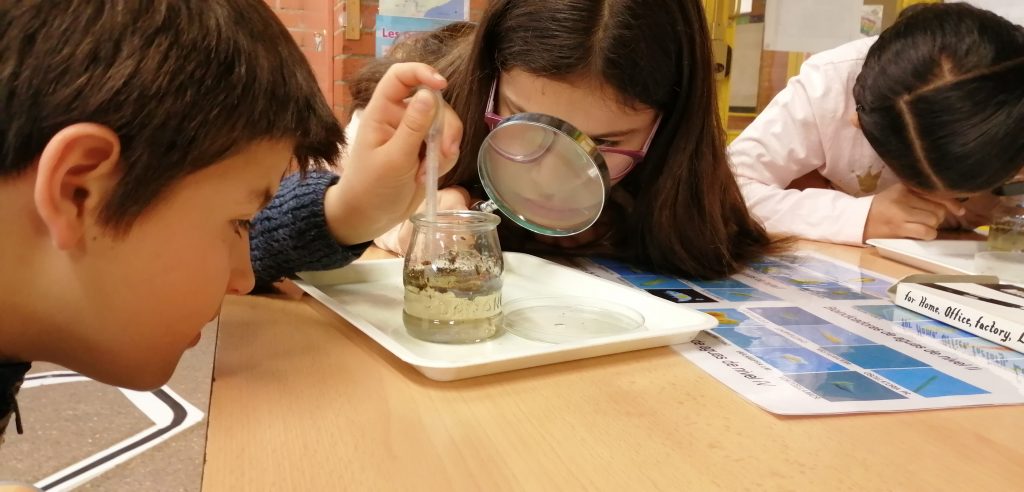 Iniciem l’activitat l’aula de Ciències fent servir les targes de treball cooperatiu i sortint a recollir i classificar mostres al pati de l’escola.