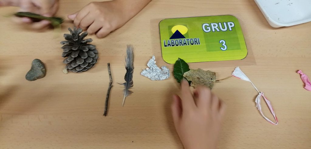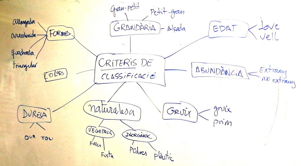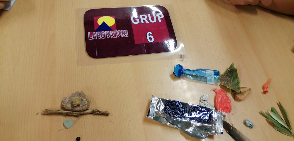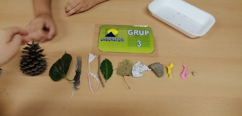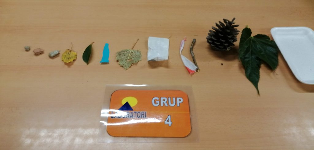 Iniciem l’activitat l’aula de Ciències fent servir les targes de treball cooperatiu i sortint a recollir i classificar mostres al pati de l’escola.