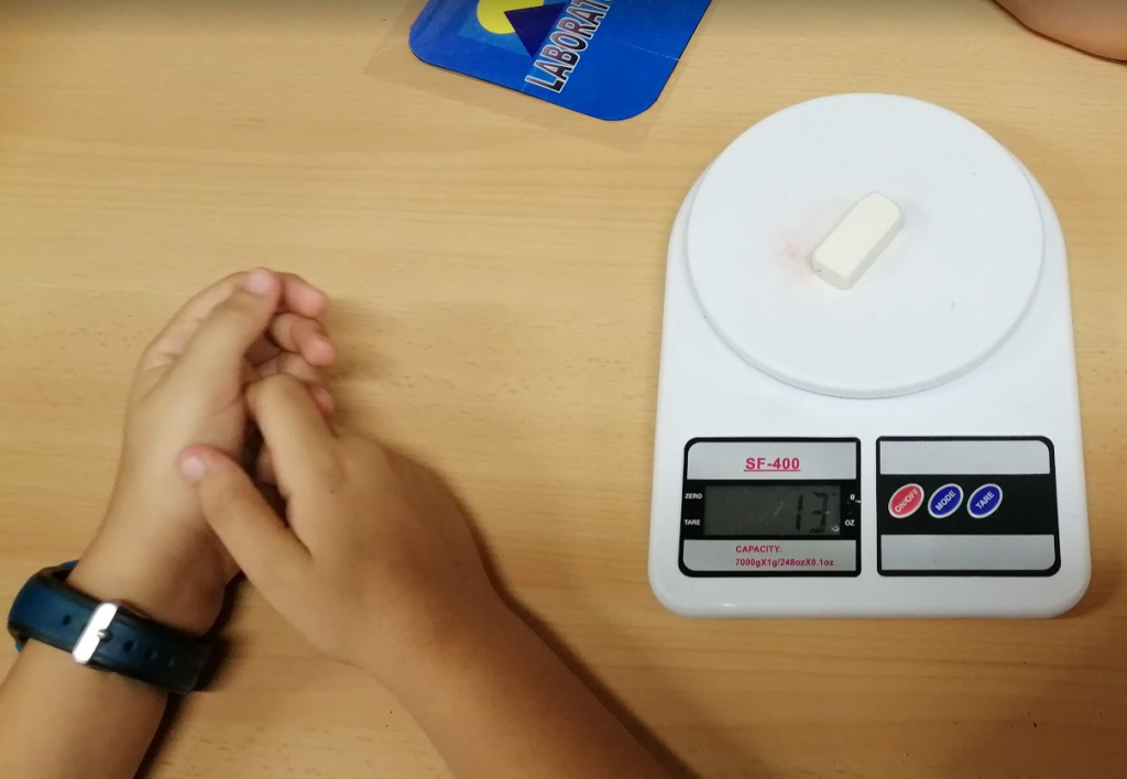 – Hem fet una previsió aproximada de la massa (grams i kg) d’alguns materials. Després de comparar-ho amb altres objectes, ho hem comprovat amb la bàscula.