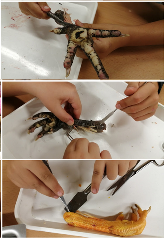 A 3r hem estudiat com funciona el moviment, amb la dissecció d’una pota de pollastre.