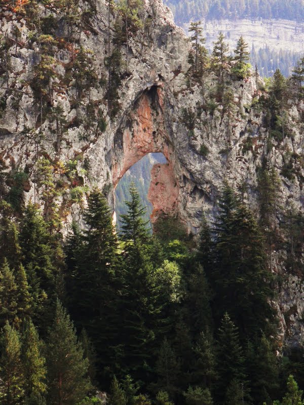 L’Avetosa (1480 m.) és un bosc d’avets, la part més frondosa queda a l’esquerra, i també s’hi troben pi roigs i bedolls. A la sortida del bosc destaca clarament Roca Foradada. Travesso el Torrent de Pi per un pont. En uns minuts arribo al Canal de la Por (1585 m.), a la dreta, prop del torrent. Deu el seu nom a que era freqüentat per llops que no deixaven dormir als pastors i al bestiar. Sóc al peu de Roca Foradada, que vorejo per un pas espectacular, amb un panorama espectacular de la capçalera de la vall de Pi i els cims del Serrat de la Muga. Continuo caminant per la pista i arribo al Torrent de les Colladetes (1620 m.). La pista s’acosta però no el creua perquè fa un fort revolt per pujar cap a Pradell de Pi. En aquest revolt, a l’esquerra i senyalitzat per una fita de pedres, hi ha un sender desdibuixat que travessa el torrent i s’enfila amunt entre els boixos, cap a Roca Foradada, que ara el veiem pel costat sud. Al cap d’uns metres, el camí es fa visible. Camino vorejant per l’esquerra el rocam calcari de Roca Foradada. Si volem travessar-la pel forat, cal enfilar-se per una canal molt incòmoda durant uns 15 min.